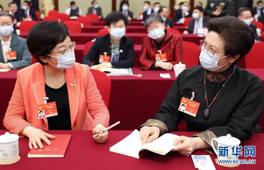 3月6日,王宜(右)委員和肖新月委員在全國政協十三屆四次會(hui) 議醫藥衛生界、教育界委員聯組會(hui) 前交流。新華社記者 黃敬文 攝