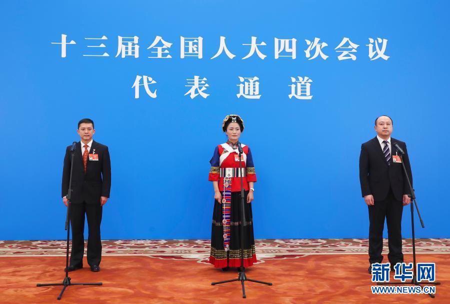 3月8日,第十三屆全國人民代表大會(hui) 第四次會(hui) 議舉(ju) 行第二場“代表通道”采訪活動。這是全國人大代表楊震生(左)、範永貞(中)、齊嵩宇通過網絡視頻方式接受采訪。