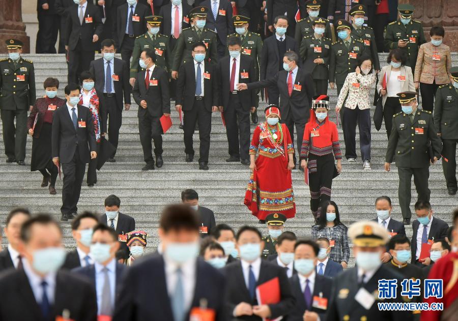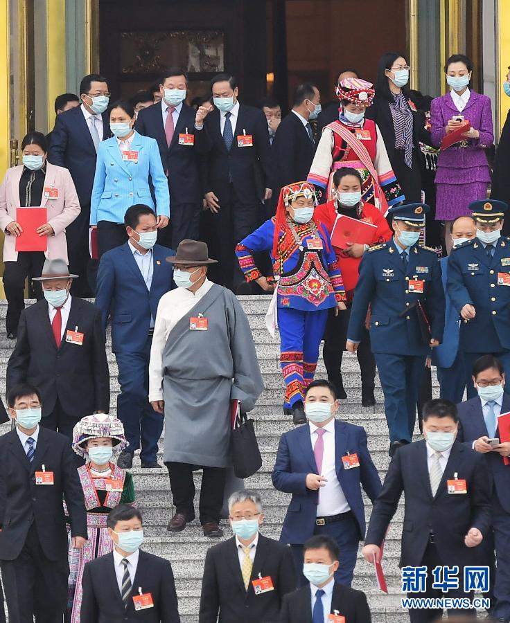 3月11日,第十三屆全國人民代表大會(hui) 第四次會(hui) 議在北京人民大會(hui) 堂舉(ju) 行閉幕會(hui) 。這是閉幕會(hui) 後,代表走出人民大會(hui) 堂。新華社記者 曹燦 攝