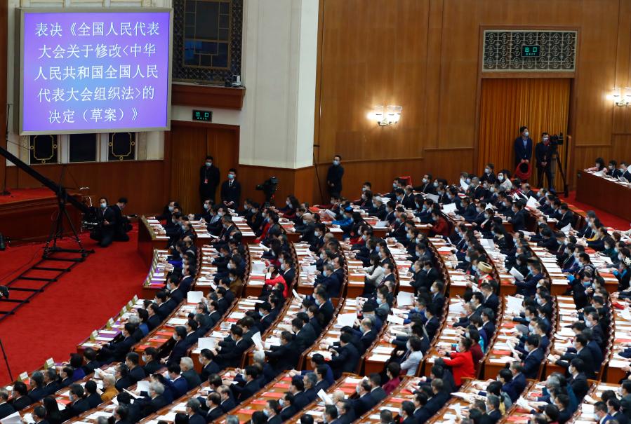 3月11日,第十三屆全國人民代表大會(hui) 第四次會(hui) 議在北京人民大會(hui) 堂舉(ju) 行閉幕會(hui) 。新華社記者 陳曄華 攝
