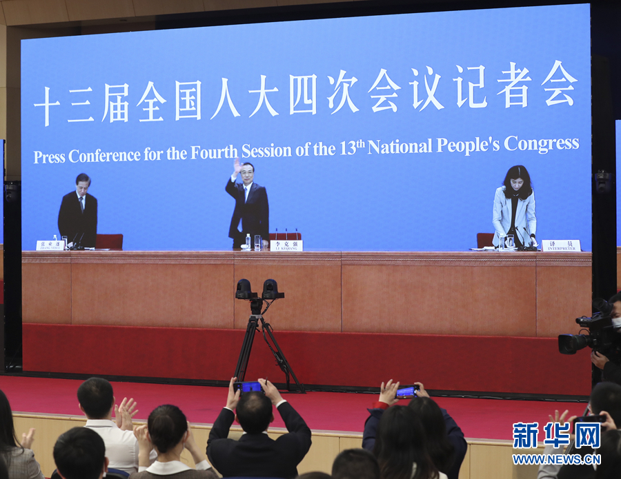 3月11日,國務院總理李克強在北京人民大會(hui) 堂出席記者會(hui) 並回答中外記者提問。這是記者在位於(yu) 梅地亞(ya) 中心的分會(hui) 場采訪。新華社記者 李鑫 攝