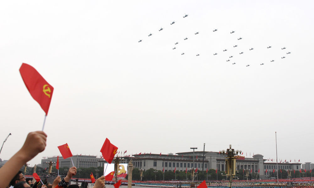 7月1日上午,慶祝中國共產(chan) 黨(dang) 成立100周年大會(hui) 在北京天安門廣場隆重舉(ju) 行。這是飛行慶祝表演。新華社記者 李欣 攝