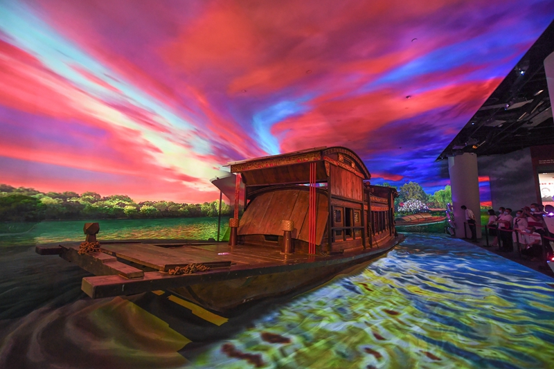 民族複興(xing) 曆史任務是偉(wei) 大建黨(dang) 精神形成的時代背景。慶祝建黨(dang) 百年之際,浙江嘉興(xing) 的南湖革命紀念館迎來參觀熱潮,“紅船起航”主題展覽日均參觀人數超過10000人次。南湖革命紀念館基本陳列“紅船起航”主題展覽由“救亡圖存”、“開天辟地”、“光輝曆程”、“走向複興(xing) ”4個(ge) 部分組成,全麵展現100年來,中國共產(chan) 黨(dang) 團結帶領中國人民取得革命、建設和改革偉(wei) 大勝利的光輝曆史。圖為(wei) 參觀者在南湖革命紀念館內(nei) 參觀紅船模型及多媒體(ti) 場景重現。新華社記者 徐昱/攝