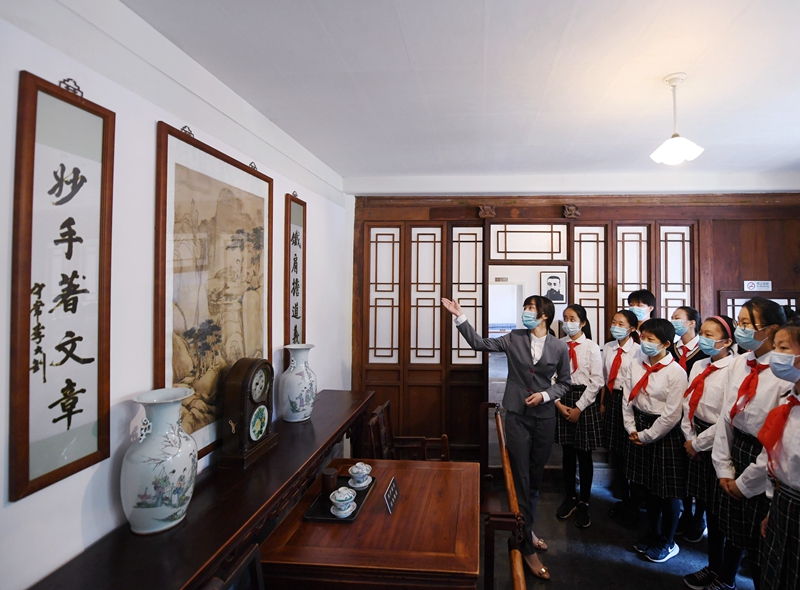 “南陳北李,相約建黨(dang) ”,偉(wei) 大建黨(dang) 活動是偉(wei) 大建黨(dang) 精神形成的實踐基礎。近期,中國共產(chan) 黨(dang) 早期北京革命活動舊址正式麵向社會(hui) 公眾(zhong) 對外開放。本次集中開放的革命活動舊址包括北京李大釗故居、《新青年》編輯部舊址等。圖為(wei) 講解員為(wei) 前來參觀李大釗故居的學生做介紹。新華社記者 張晨霖/攝