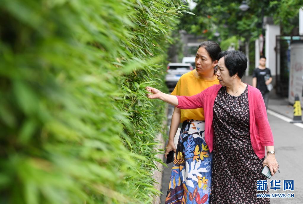 林丹(右)和軍(jun) 門社區黨(dang) 委副書(shu) 記謝榕在社區檢查景觀綠植等工作(6月23日攝)。新華社記者 林善傳(chuan) 攝