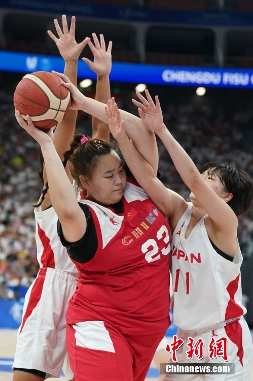 8月5日,第31屆世界大學生夏季運動會(hui) 女子籃球決(jue) 賽在四川成都舉(ju) 行,中國隊99:91戰勝日本隊獲得冠軍(jun) 。圖為(wei) 中國隊球員劉禹彤(紅衣,23號)在比賽中進攻。