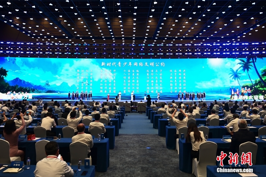 7月18日,2023年中國網絡文明大會(hui) 在福建省廈門市舉(ju) 行。本次大會(hui) 以“網聚文明力量 奮進偉(wei) 大征程”為(wei) 主題,由中央網信辦、中央文明辦、中共福建省委、福建省人民政府共同主辦。圖為(wei) 《新時代青少年網絡文明公約》發布現場。田雨昊 攝